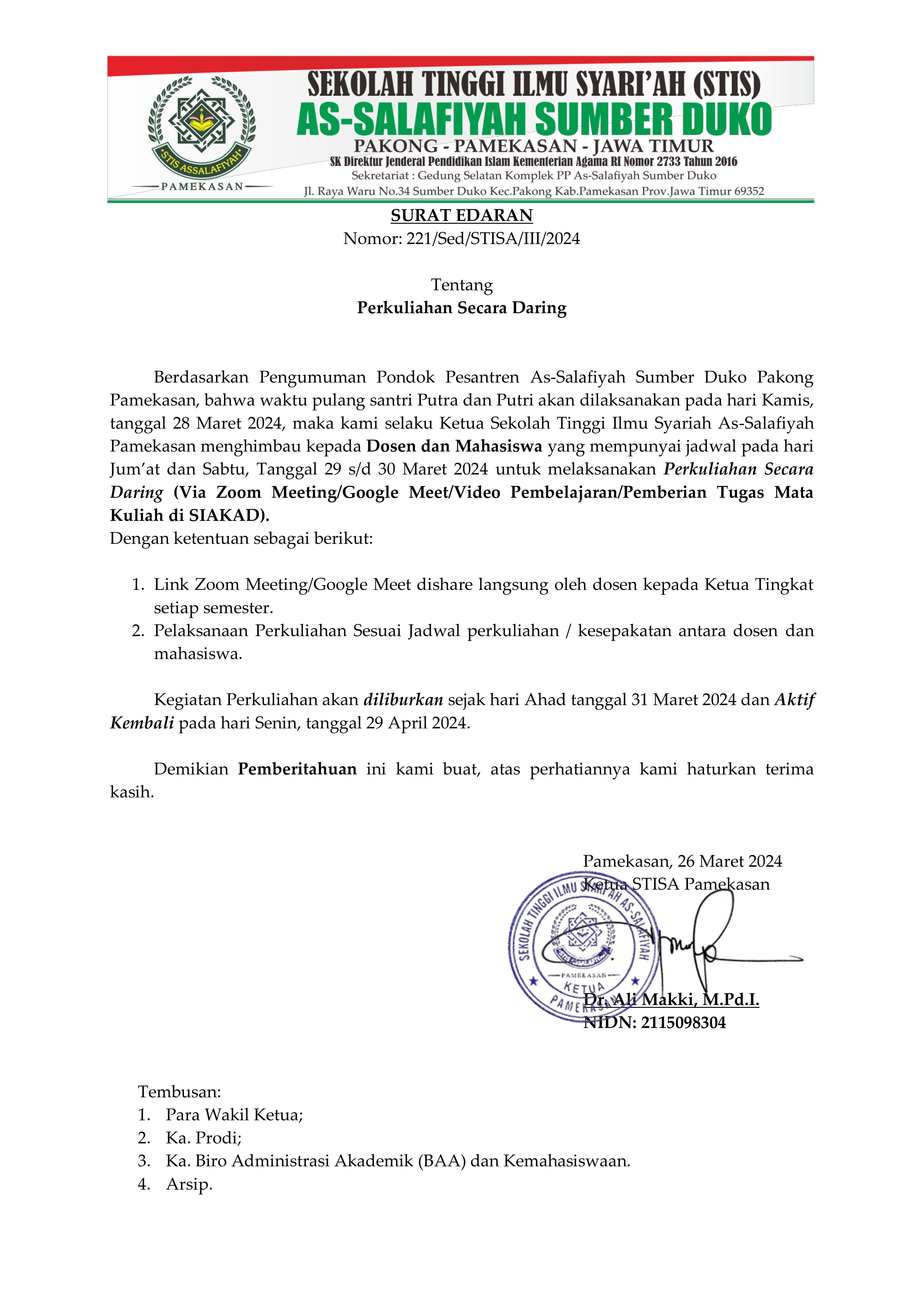 Pengumuman Libur Perkuliahan Bulan Ramadhan 2024