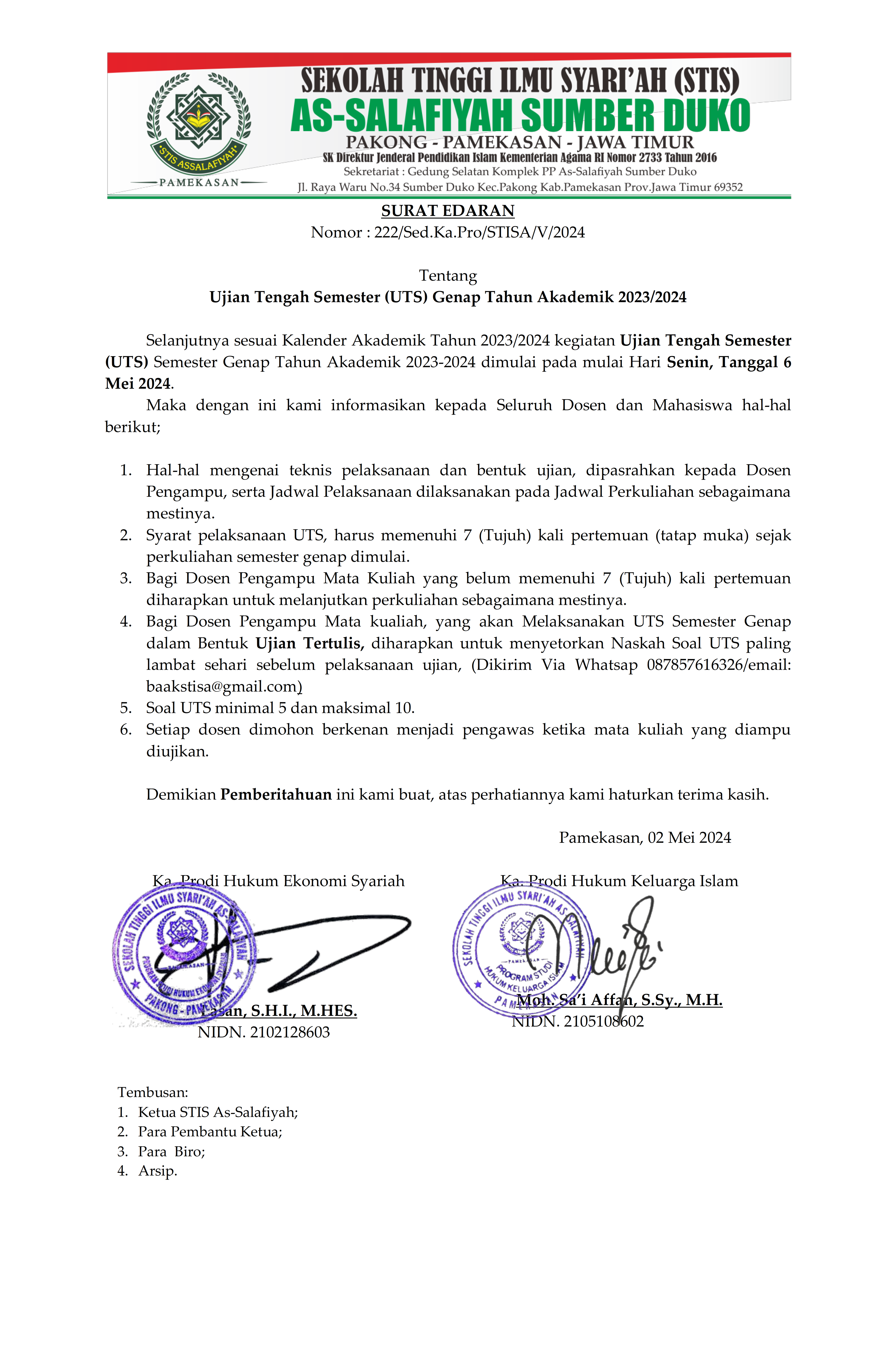 Pengumuman Pelaksanaan UTS Semester Genap STISA Pamekasan